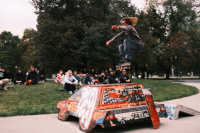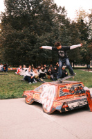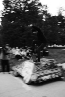 Záverom dňa bol BEST TRICK cez "auto" - teda prekážku v podobe auta, ktorú sa v parku ocitla pod evente od chalanov z Faces. Plán bol jasný - auto položiť za kicker a začať best trick. Po prvých pokusoch už bolo jasné že niečo tam padne. Skočka fungovala dostatočne a tak začali padať prvé triky. Prekvapením bol mladý Damián, ktorý tam poslal nose manual, Dominik Budinský s jeho fs ollie no najviac to zabili Adam Tran s jeho akýmsi footplantom na aute a Matúš Mozola s neskutočným fs nosebluntom. Chalani si rozdelili ceny a v dobrej nálade sme sa postupne presunuli do klubu Šafko kde nás o 23:00 čakalo samotné video. Video uzatváral Kiko Nguyen, ktorý svojim partom odpálil dekel väčšine ľudí v sále. Big up za jeho triky. Tento part si naozaj zaslúži vašu pozornosť - tak ako celé video.