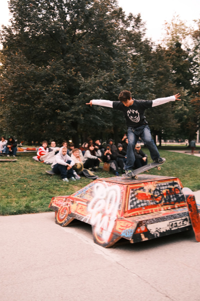 Už od samotného začiatku bolo vo vzduchu cítiť priateľskú atmosféru, pretože sa stretla partia kamošov nielen z Bratislavy. Prekážky v parku praskali vo švíkoch pretože už dávno sa tam nestretlo toľko skaters. Početná skupina ľudí prilákavala čoraz viac zvedavých očí z okolia, čo bol znak toho, že session môže začať.