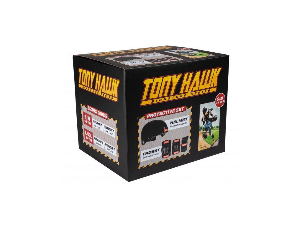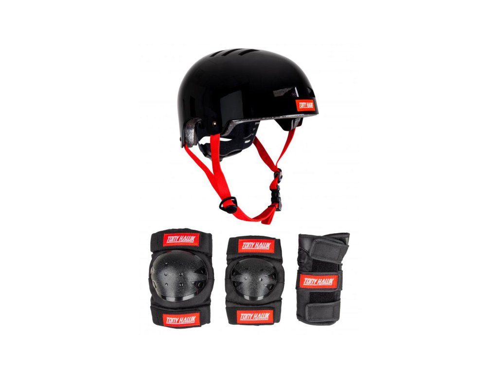 Prilba a sada chráničov na skate od legendárneho Tony Hawka. Prilba je určená ako pre úplných začiatočníkov tak aj pre pokročilých, ktorí sa chcú chrániť pri skateboardingu na väčších prekážkach. Má vetracie otvory a taktiež zadné pútko s nastavením veľkosti. Sada chráničov obsahuje všetko potrebné, takže budú ochránené kolená, lakte a zápästia.