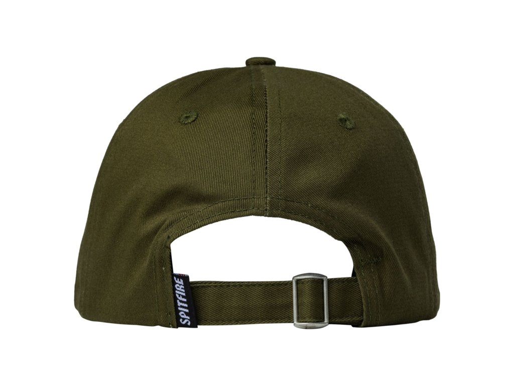 Olivovo zelená šiltovka obľúbenej značky SPITFIRE s vyšívaným logom na prednom panely. Šiltovka má neprehliadnuteľné červeno-čierne vyšívanie loga a je vyrobená zo 100 % bavlny. Veľkosť je vďaka klasickému zapínaniu na pracku univerzálna.