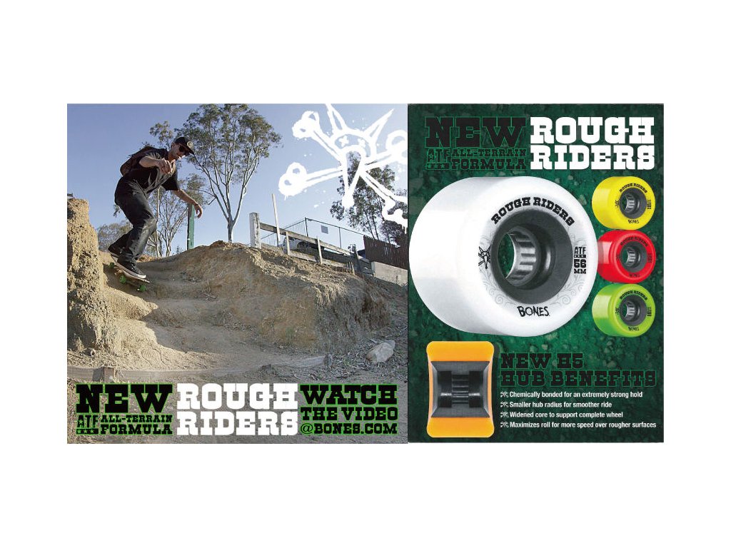 Rough Riders sú novinkou v rade koliesok ATF (All Terrain Formula). Kolieska majú tvrdosť 60B (80A) pre najpohodlnnejšie vozenie. Maximálna rýchlosť a trvácnosť kolieska. Vzhľadom na mäkkšiu zmes urethánu je v koliesku ešte plastová časť do ktorej sa vsúvajú ložiská.