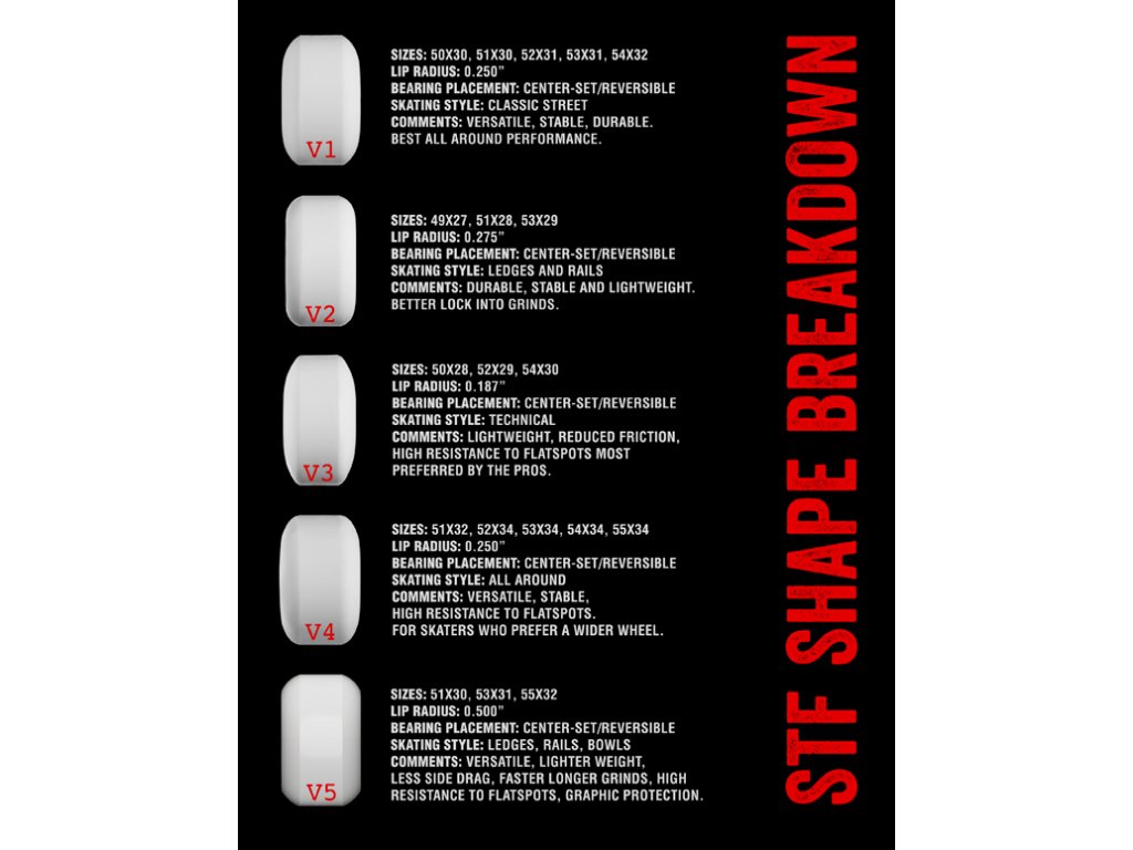 Street Tech Formula™ (STF) je špeciálne navrhnuté zloženie uretánu z najlepších kvalitných komponentov za cieľom získať všetky najlepšie vlastnosti potrebné pre maximálny výkon street kolesa.
