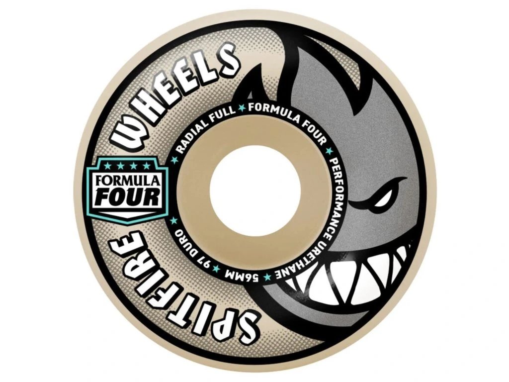 Vlajková zmes uretánu značky skateboardových koliesok SPITFIRE WHEELS nesie názov FORMULA FOUR a je považovaná za jednu z najlepších zmesí na skate kolieska na svete. Táto zmes zaručuje pomalšie opotrebenie koliesok, zabraňuje vzniku plošiniek a ako je u značky SPITFIRE zvykom zaručuje omnoho vyššiu rýchlosť. Kolieska s RADIAL FULL tvarom sú kombináciou klasického a kónického tvarua a spájajú tak do seba tie najlepšie vlastnosti týchto 2 tvarov. Kolieska skvele držia na kopingu, tyčkách a múrikoch a rýchlosť, ktorá je u koliesok SPITFIRE FORMULA FOUR samozrejmosťou.