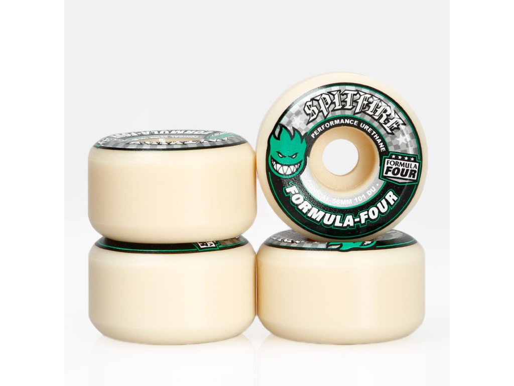 Vlajková zmes uretánu od značky SPITFIRE WHEELS nesie názov FORMULA FOUR a je považovaná za jednu z najlepších zmesí na skate kolieska na svete. Táto zmes zaručuje pomalšie opotrebenie koliesok, zabraňuje vzniku plošiniek a ako je u značky SPITFIRE zvykom zaručuje omnoho vyššiu rýchlosť. Kolieska s CLASSIC tvarom sa hodia na skateboarding v skateparku, bazéne ale aj na streete.