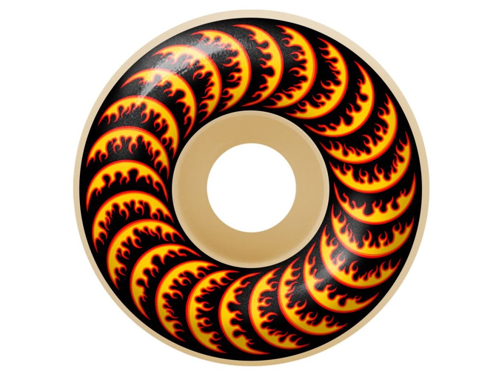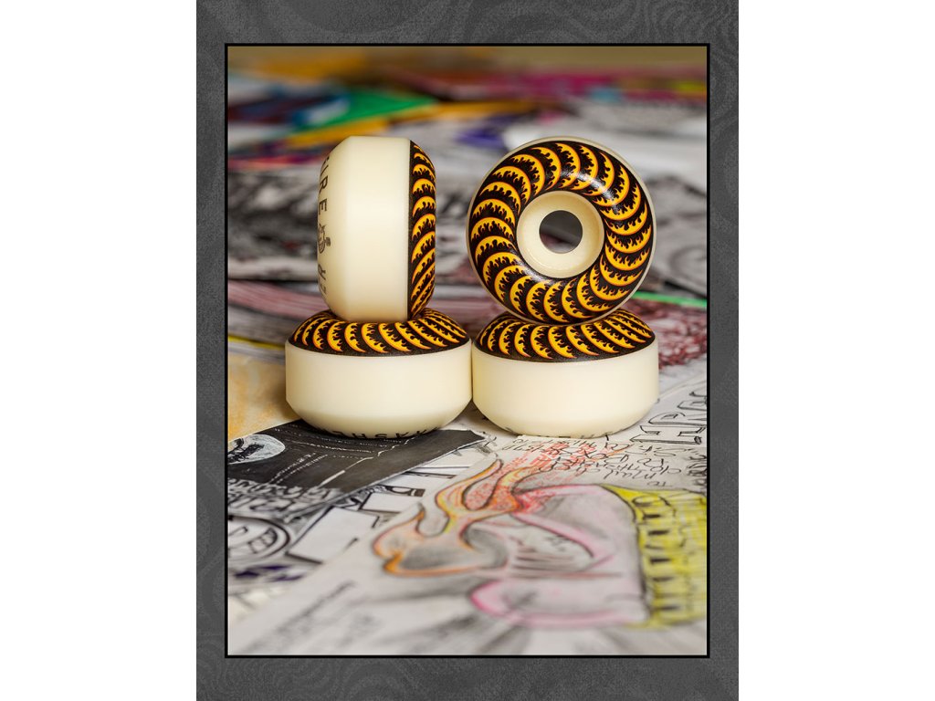 Vlajková zmes uretánu od značky SPITFIRE WHEELS nesie názov FORMULA FOUR a je považovaná za jednu z najlepších zmesí na skate kolieska na svete. Táto zmes zaručuje pomalšie opotrebenie koliesok, zabraňuje vzniku plošiniek a ako je u značky SPITFIRE zvykom zaručuje omnoho vyššiu rýchlosť. Kolieska s RADIAL tvarom sú kombináciou klasického a kónického tvarua a spájajú tak do seba tie najlepšie vlastnosti týchto 2 tvarov. Kolieska skvele držia na kopingu, tyčkách a múrikoch a rýchlosť, ktorá je u koliesok SPITFIRE FORMULA FOUR samozrejmosťou.