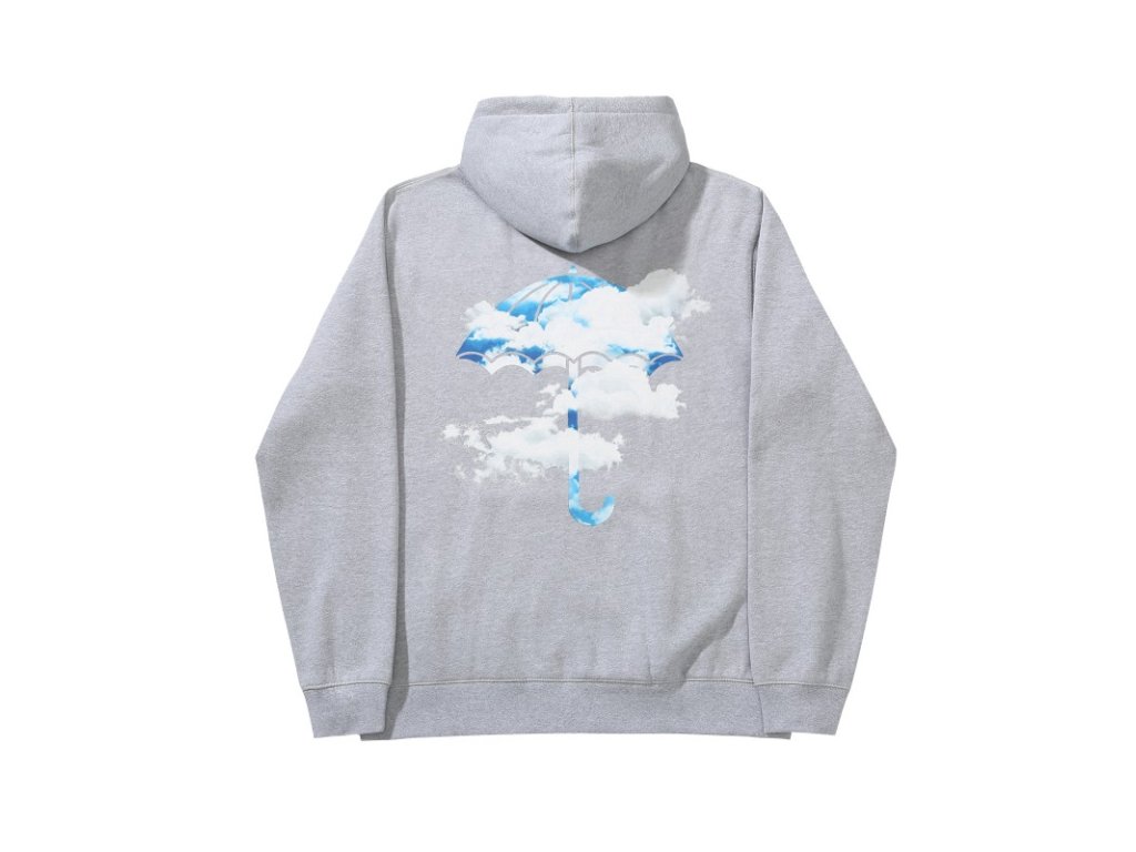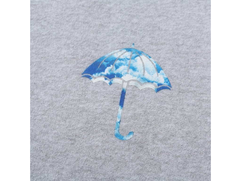Šedá mikina značky Hélas s ich ikonickým dáždnikovým dizajnom na chrbte a na ľavej časti hrudi. Mikina je vyrobená zo 100% bavlny a jej dizajn tvorí Hélas logo v oblakoch. Mikina pochádza z kolekcie WINTER 2020.