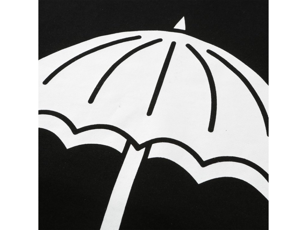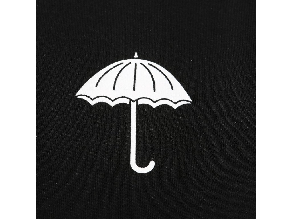 Čierna mikina značky Hélas s ich ikonickým dáždnikovým dizajnom. Mikina je vyrobená zo 100% bavlny a jej dizajn tvorí potlač dáždnika na chrbte a menšieho na hrudi. Mikina pochádza z kolekcie WINTER 2020.