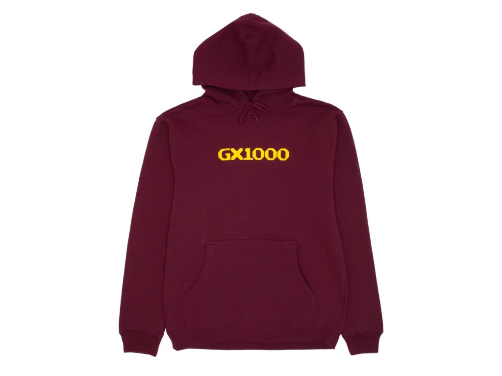 GX 1000 HOODIE BURGUNDY YELLOW FRONT PRINT