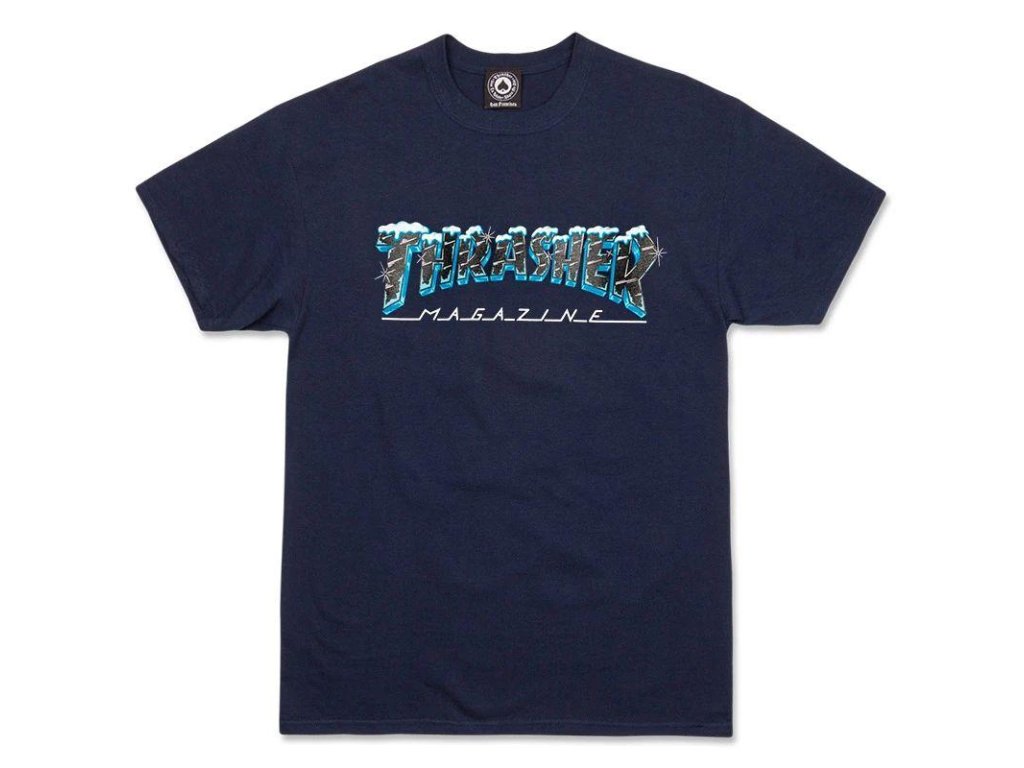 Modré tričko THRASHER s úplne novým dizajnom SKATEMAG loga ktoré je zasnežené. Tričko je vyrobená z 50% bavlny a 50% polyesteru.
