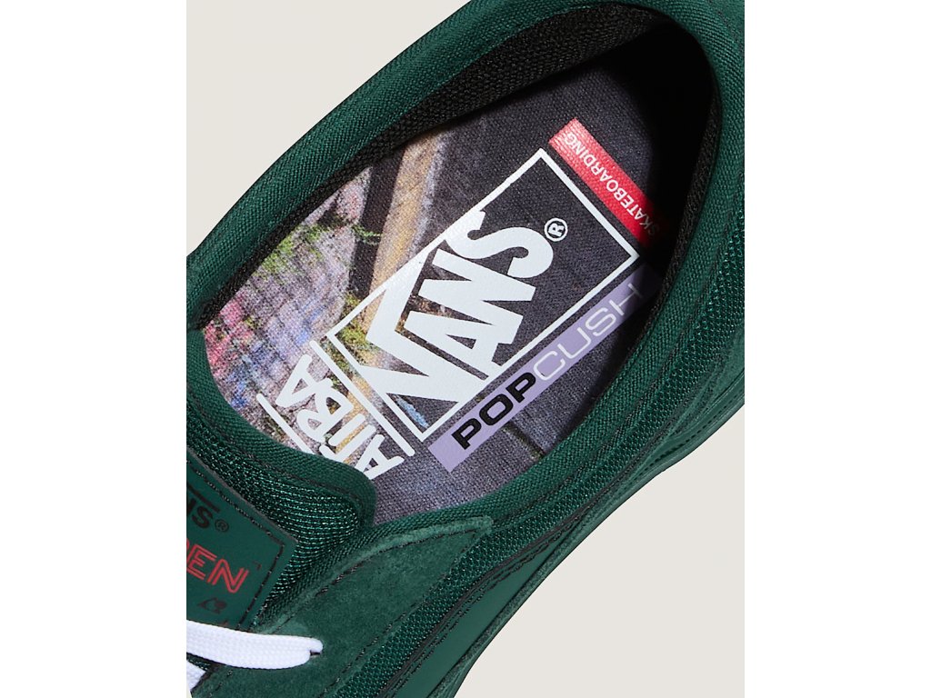 Colourway EMERALD GREEN je vytvorený v spolupráci s uznávaným skate fotografom menom Atiba Jefferson, ktorého fotky nájdeš na tlmiacoch vložkách topánok.