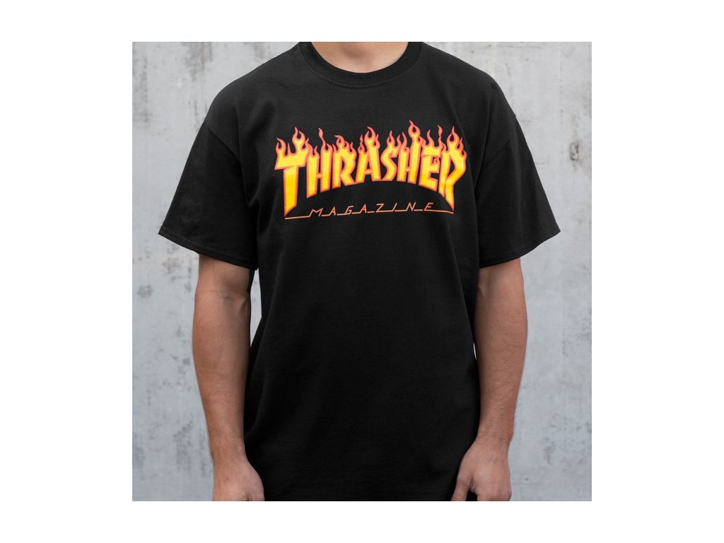 Čierne tričko THRASHER s obľúbeným flame logom. Tričko je vyrobené z 100% Bavlny.