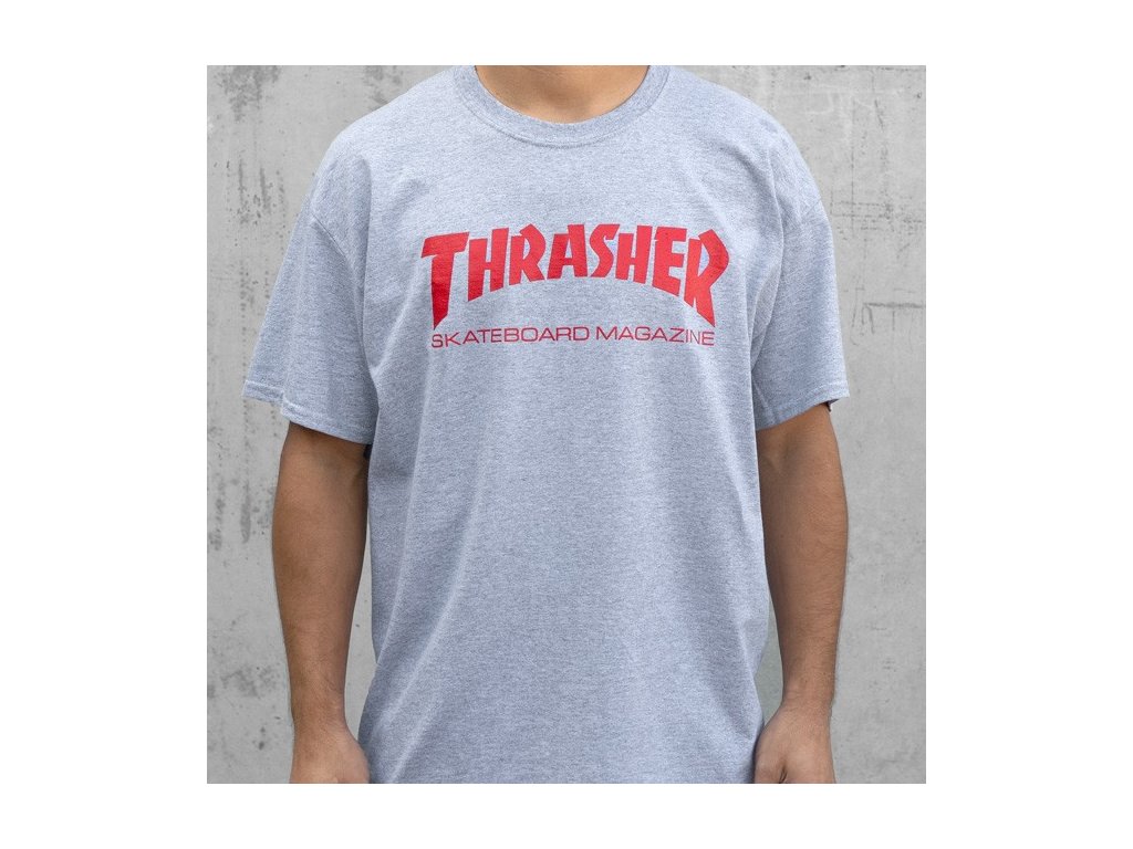 Šedé tričko THRASHER s klasickým skatemag logom. Tričko je vyrobené z 100% Bavlny.